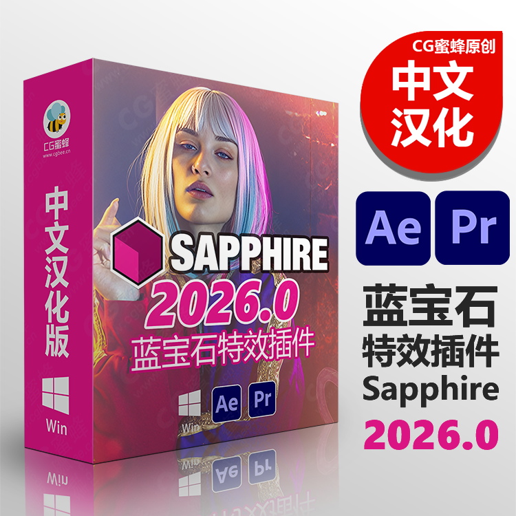 CG蜜蜂影视后期资源站 » 中文汉化AE Pr蓝宝石视觉特效插件BorisFX Sapphire Adobe 2026 Win