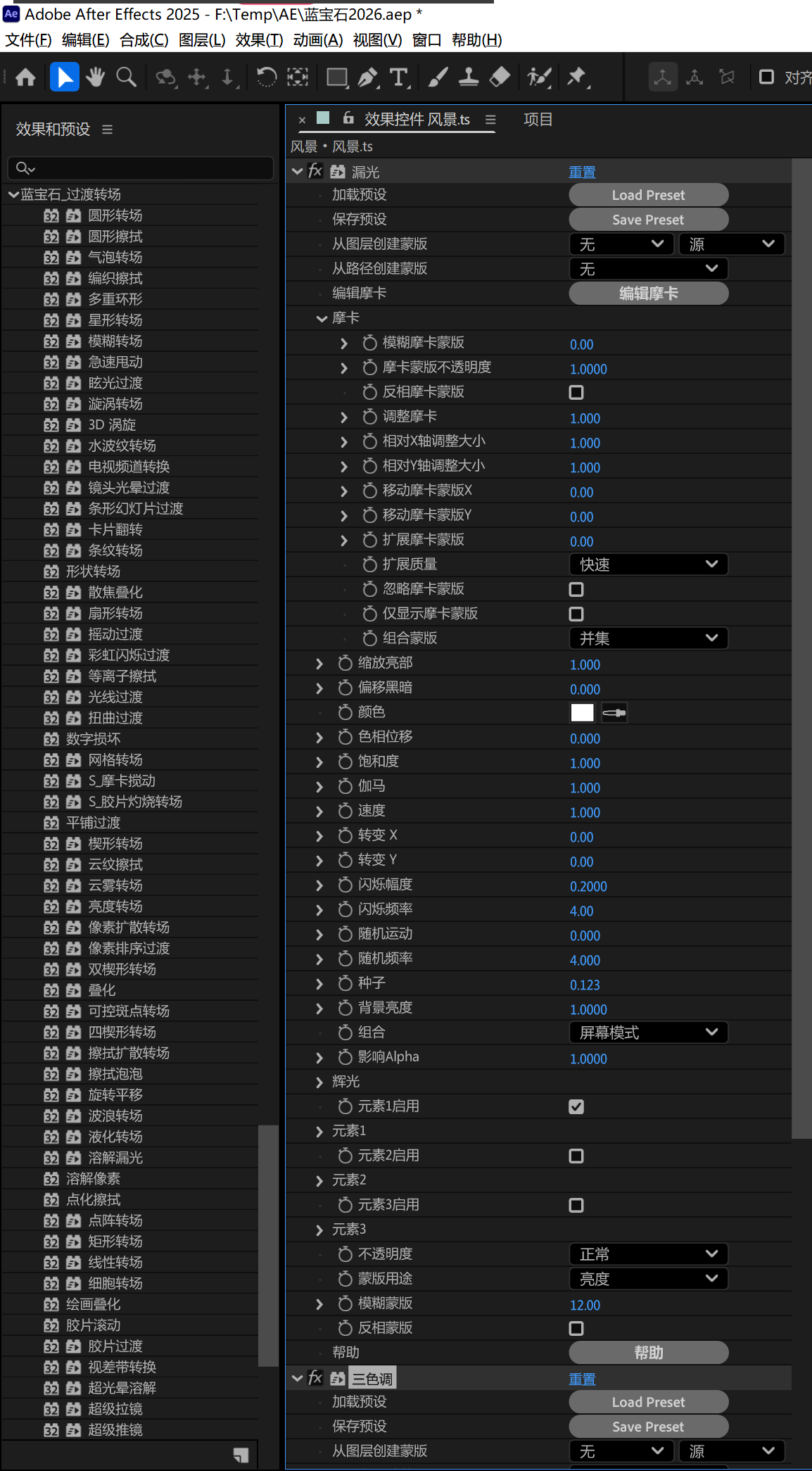 MochaWhip Transition(Mocha 甩动转场):集成 Mocha AI 主体分离工具,先从第一段素材中切割出主体,再通过 S_Whiplash 功能将其 “甩入” 下一段场景;支持独立调节前景 / 背景效果,自带缓入动画,适合高能量剪辑、混剪及音乐视频。