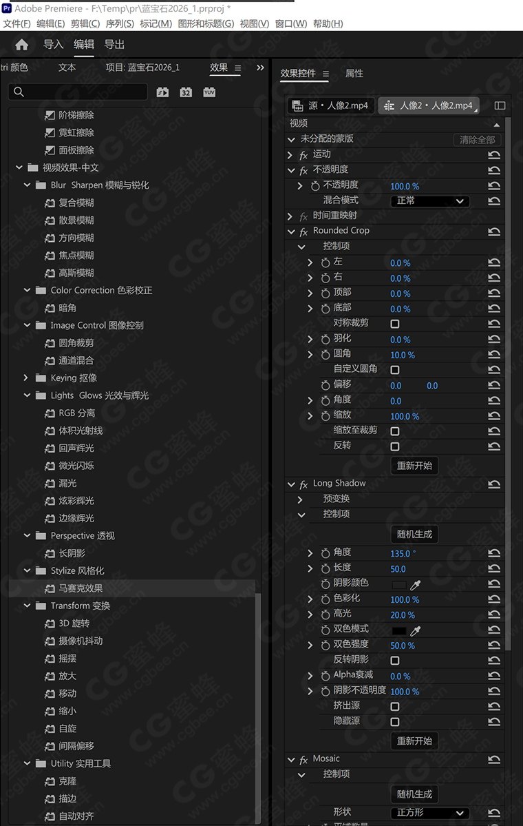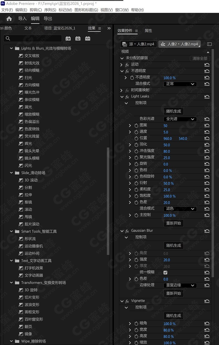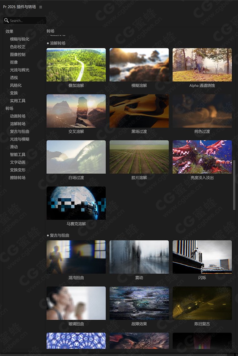 CG蜜蜂影视后期资源站 » 中文汉化 Adobe Premiere Pro 2026 内置效果插件+转场过渡插件 (Win10+11)