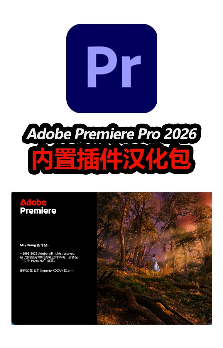 中文汉化 Adobe Premiere Pro 2026 内置特效+转场插件 Win